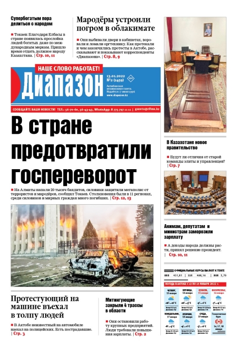 Они выбивали двери в кабинетах, воровали и ломали оргтехнику. Как протекали и чем закончились протесты в Актобе, рассказывают и показывают корреспонденты «Диапазона». | Стр. 8, 9
