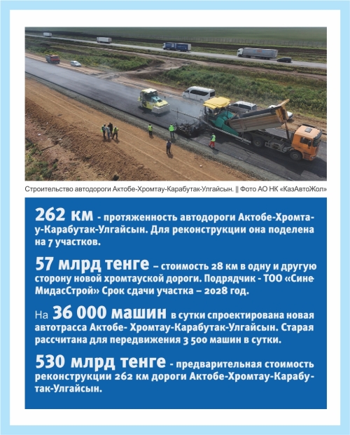 - В 2024 году работы начали на первом из 7 участков дороги Актобе - Хромтау-Карабутак- Улгайсын. Проект на него был готов, прошел экспертизу, деньги выделили из республиканского бюджета. На остальные 6 участков подрядчиков определят до конца года, реконструкция будет за счет международных займов. Один год подрядчикам дается на проектирование, 3 года на строительство и 7 лет на содержание дороги. Но мы будем стараться ускорить проектирование: план трассы у нас есть, если его продолжит подрядчик, в 2026 году можно будет начать строительно-монтажные работы. Надо утвердить конструктив дорожной одежды и другие детали, но, думаю, разработанная схема останется. По этой дороге идет основной поток транспорта, едущий через Казахстан.
