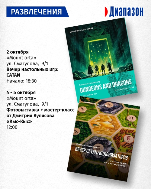 Выставки, театры, концерты, игры. Что можно найти в городе для культурного досуга с 2 по 9 октября узнал «Диапазон».