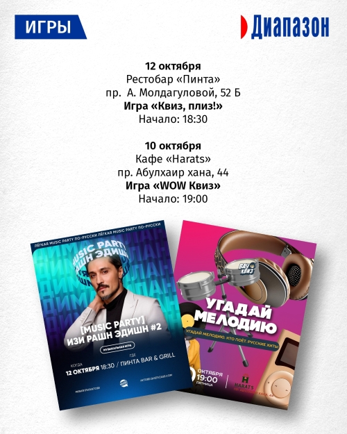 Выставки, театры, концерты, игры. Что можно найти в городе для культурного досуга с 9 по 17 октября узнал «Диапазон».