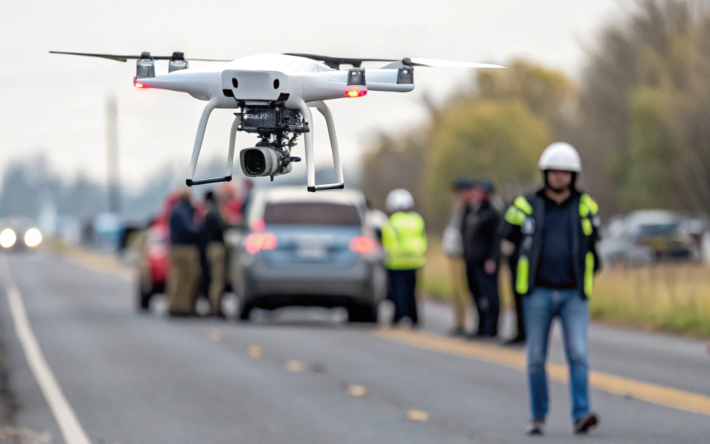 Полиция в Казахстане начинает фиксировать места ДТП с помощью дронов, передает Sputnik.kz.