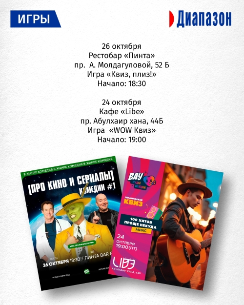 Выставки, театры, концерты, игры. Что можно найти в городе для культурного досуга с 23 по 31 октября узнал «Диапазон».