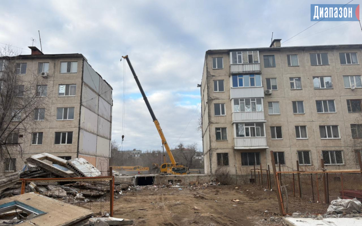 Компания «Ремстрой монтаж-2008» почти уже демонтировала разрушенный взрывом подъезд. Сейчас дом выглядит так, словно его разделили на два. О том, что раньше это был один дом говорят только старые стены, сложенные во дворе и перед домом.