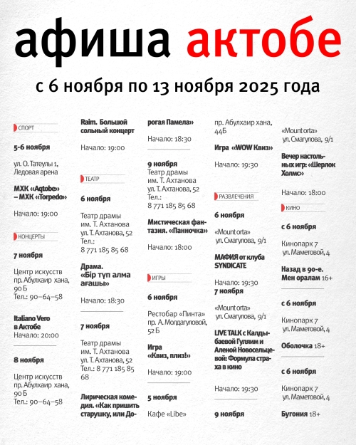 Афиша Диапазона. Куда сходить в Актобе