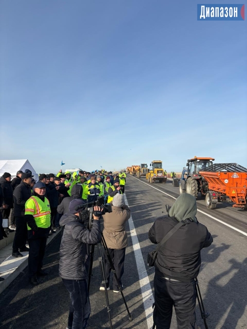 По традиции новый участок дороги открыли с торжественной речью аксакала, поздравлениями чиновников. Первой по новой дороге проехала спецтехника.