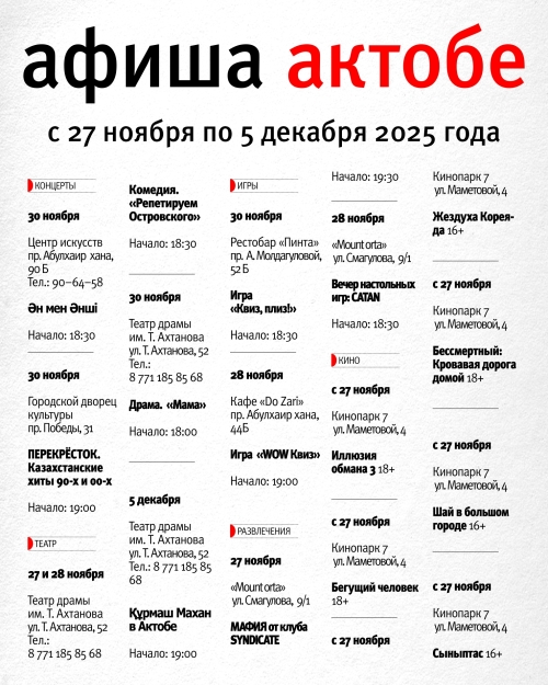 Выставки, театры, концерты, игры. Что можно найти в городе для культурного досуга с 27 ноября по 5 декабря узнал «Диапазон».