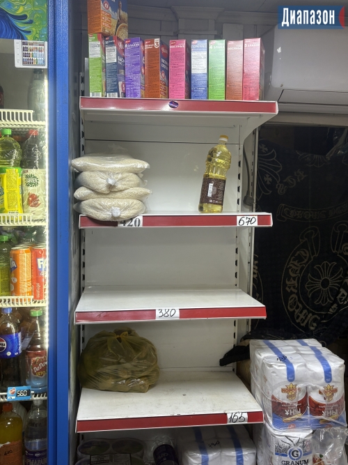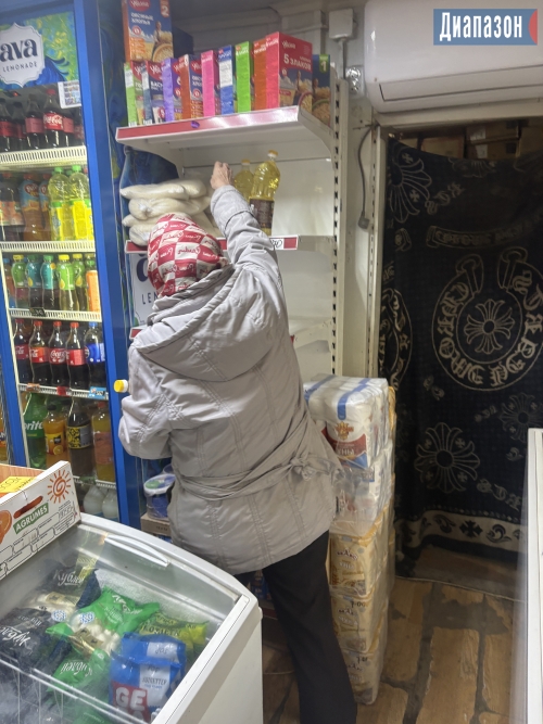 Первый же магазин по адресу Рыскулова, 4 «Б» оказался закрыт. Зато по проспекту Мира в Жилгородке на рынке работают сразу два магазина «Табыс». В них можно было купить картошку по 165 тенге за килограмм, рис – по 420, масло – по 670 и сахар –по 380. В одном магазине масла оставалось всего несколько бутылок, а в магазине по соседству закончился сахар.