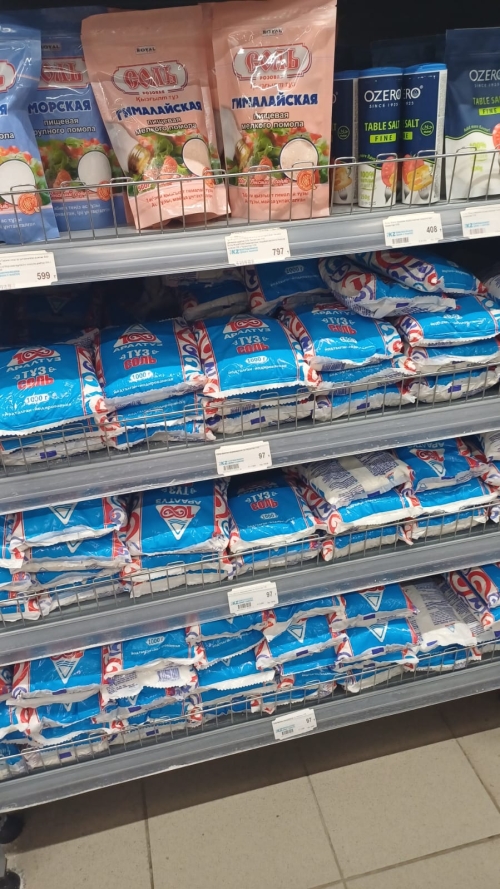 В магазинах преимущественно продается соль отечественных производителей, таких как «Аралтұз» и «Ассоль», а также российского производства «Илекская».
