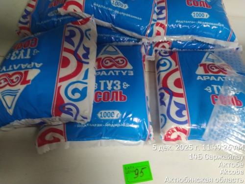 - Оптовая цена соли «Аралтұз» составляет – 85 тг, розничная – 97 тг.