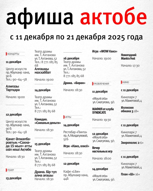 Выставки, театры, концерты, игры. Что можно найти в городе для культурного досуга с 11 по 21 декабря узнал «Диапазон».