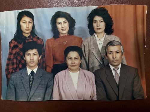 Глава семьи с супругой и детьми - Акмарал, Эльвирой, Светланой и Асланом.