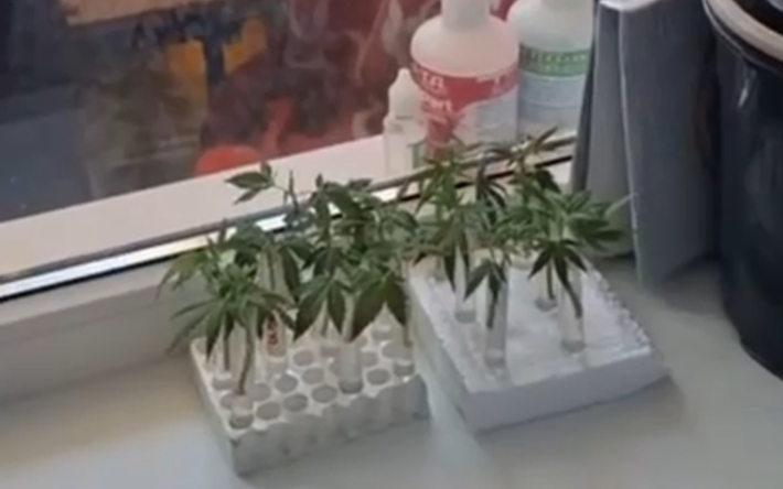 Кроме того, внутри квартиры оперативники нашли 15 отростков растения, помещённых в прозрачные пластиковые пробирки с водой. Отростки предназначались для последующего выращивания новых кустов.