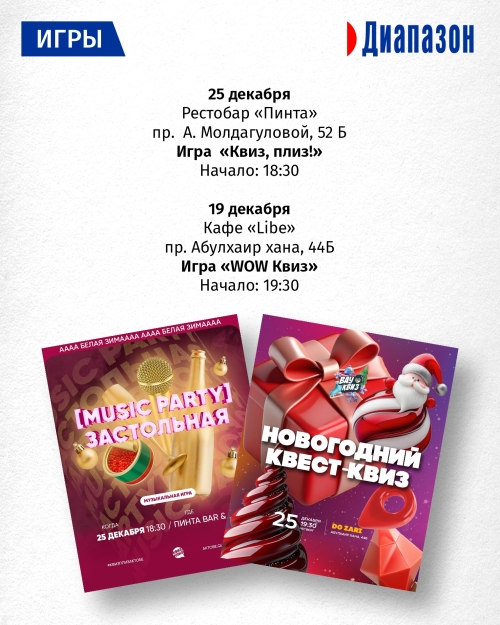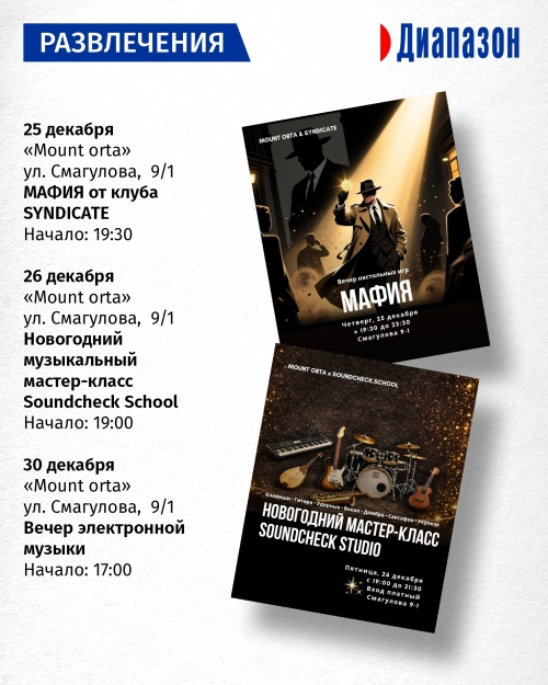 Выставки, театры, концерты, игры. Что можно найти в городе для культурного досуга с 25 декабря по 4 января узнал «Диапазон».
