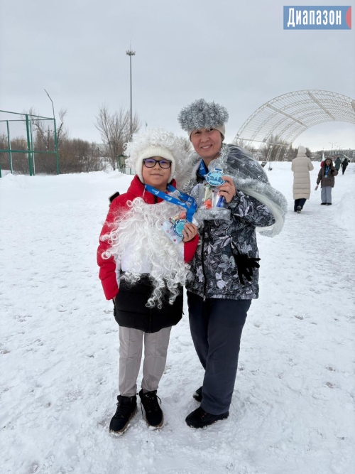 Яркая Сауле бежала с 12-лентним внуком Ерали. Раньше Сауле занималась легкой атлетикой, а сейчас не пропускает городские забеги.