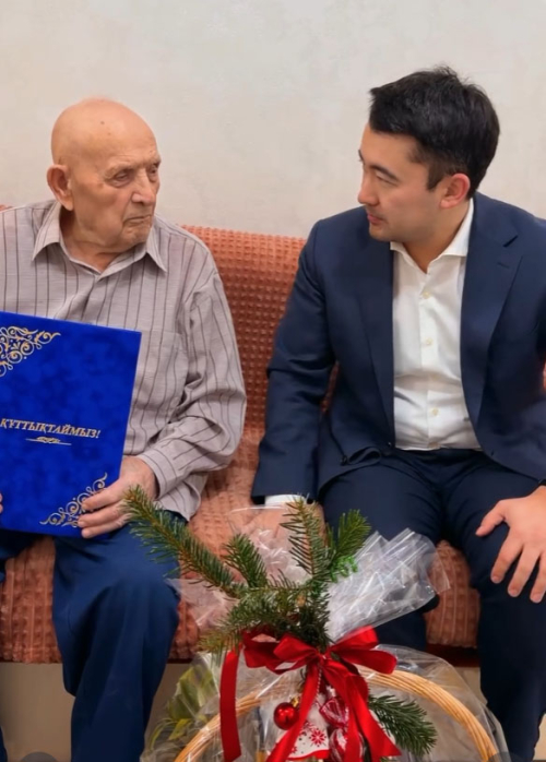 Первым Василия Ивановича Грецкого 1 января поздравил аким района Нурхан Тлеумуратов. Он пожелал дедушке здоровья, поблагодарил за Победу, передал подарок.