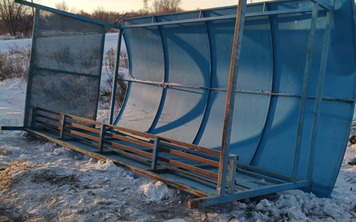Упала остановка в дачном кооперативе на ул.Рыскулова. Лежит с пятницы. Она не прикреплена. Как ветер, так падает. Никто не приезжает установить.