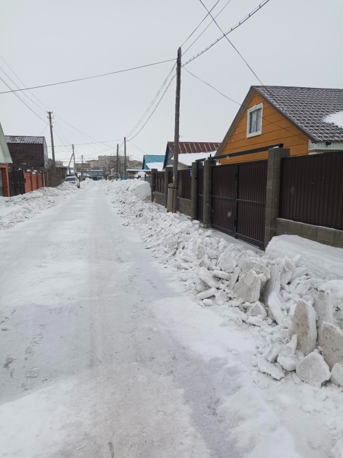 19 января коммунальные службы чистили от снега дорогу и завалили подъездные пути крупными кусками льда и спрессованного снега. Перекрыли парковочные места вдоль забора и пространство у ворот и калиток.