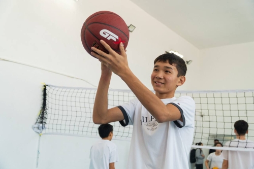 Девятиклассники Дастан Алпамыс и Нургельды Хасенов делятся, что физкультура - один из любимых уроков. «Физкультура у нас всегда проходит интересно. Сейчас часто играем в баскетбол, национальные игры, волейбол. Нам нравится», - говорит Дастан.