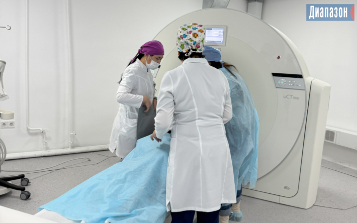 – У нас сегодня замечательный день, мы начинаем пускать в ход новый компьютерный томограф китайского производства, он 80-срезный, выдерживает массу пациента до 240 кг. Раньше мы разворачивали людей, так как аппарат не выдерживал нагрузки больше 120 кг. Новый КТ мощнее. В год к нам обращаются около 35 тысяч человек, из которых 15-20 тысяч мы госпитализируем, и 6 тысячам проводим оперативное вмешательство. Бывают периоды, как гололед, когда в день могут обращаться до 300 пациентов. В день мы проводим до 30 исследований на КТ. В нашей больнице есть отделения нейрохирургии, травматологии, челюстно-лицевой хирургии, которые работают 24/7, они используют КТ круглый год, – рассказал заместитель руководителя по лечебной работе Азамат Турушев.