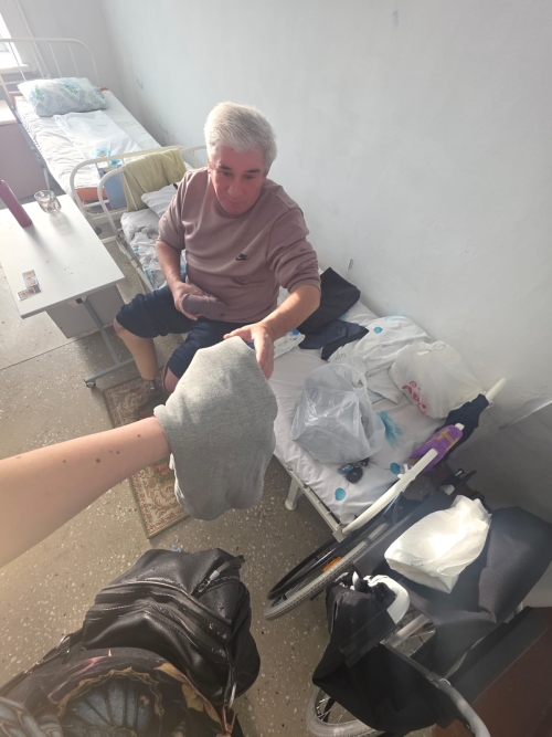 - К сожалению, в ту ночь был сильный мороз, а он ночевал на обычной остановке. Не спал всю ночь, сильно промерз. На следующий день я нашла его в одном из супермаркетов. Он был весь красный. Я вызвала туда скорую помощь. В БСМП встретили тепло, провели полное обследование, сначала положили в терапию, а сейчас он в сестринском уходе. Это ему было необходимо, так как кроме сильного охлаждения, у него текли культи, протез в ужаснейшем состоянии. Сейчас я почти каждый день его навещаю. Он начал улыбаться, смеяться! До этого он даже глаза не поднимал и говорил односложно. А сейчас на его лице улыбка… Это все того стоило. Хотим сказать спасибо всем, кто помогал Валерию! Подключились центр занятости, облздрав. Неравнодушные люди помогли с телефоном, приобрели одежду, еду, СИМ-карту, помогли оплатить госуслуги. От всего сердца спасибо!