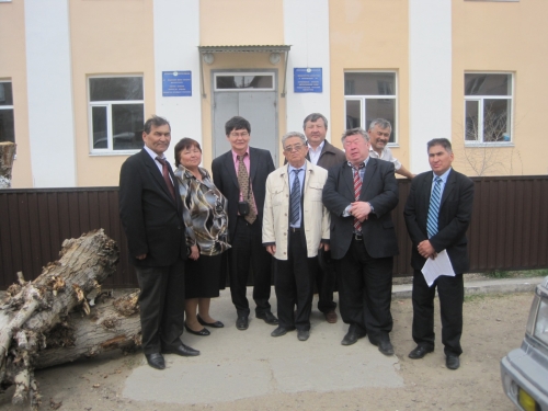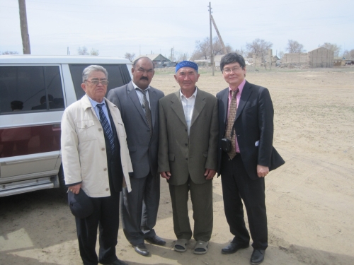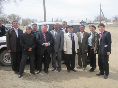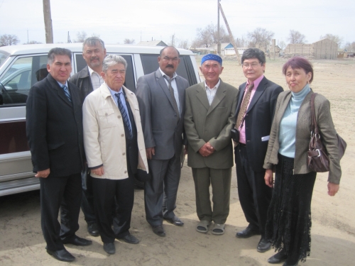 Апрель 2011 года. п. Акколь, Айтекебийский район. Асылбек Толешов (крайний справа) с общественниками приехал к родным Куаная Абдрахманова.