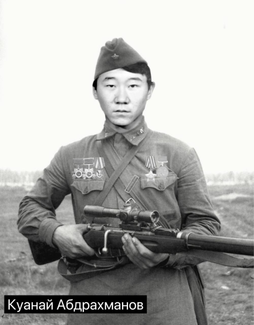 Куанай Абдрахманов многие годы считался пропавшим без вести. Пока в 2011 году поисковики не обнаружили документы о его подвигах. Они решили отыскать родных снайпера, вышли на казахское землячество в Москве, родных участника войны нашли в Карабутаке, передает «Диапазон».