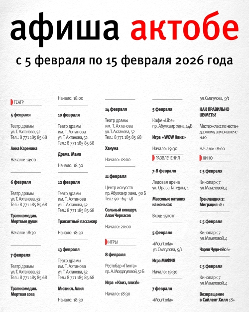 Афиша Диапазона. Куда сходить в Актобе