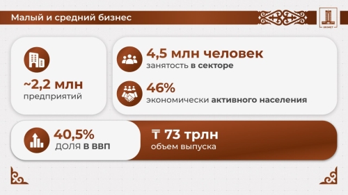 По итогам 2025 года количество действующих субъектов МСБ в Казахстане увеличилось на 5% и превысило 2,2 млн предприятий. Численность занятых в секторе выросла на 3,9% и составила 4,5 млн человек, что соответствует около 46% занятых и почти половине всего экономически активного населения страны. Доля МСБ в валовом внутреннем продукте составила 40,5%, объем выпуска продукции – порядка 73 трлн тенге.