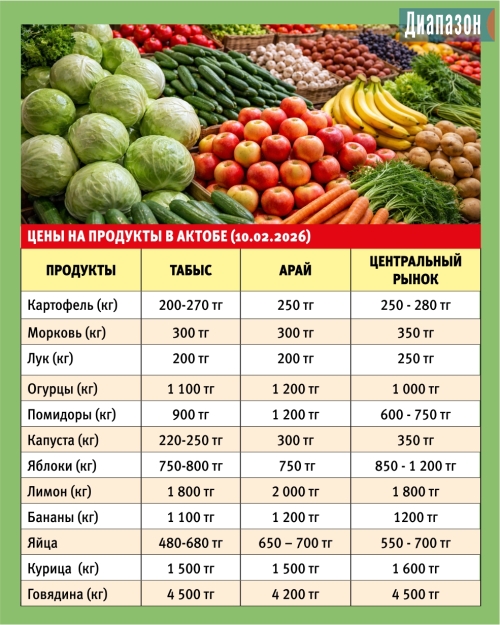 10 февраля корреспондент «Диапазона» прошлась по актюбинским рынкам - «Арай», «Центральный» и «Табыс», посмотрела, сколько стоят основные продукты. На некоторые позиции цены заметно подросли.