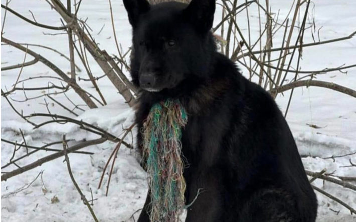 Кто-то привязал собаку на короткую верёвку к дереву так, что собака не могла даже лечь. Так она просидела там несколько дней. Об этом рассказали работники близлежащей станции техобслуживания.
