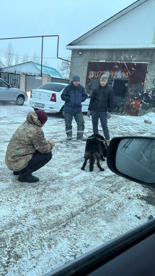 - В тот день должна была поехать в сторону "Мерея", но планы резко поменялись, и я с сыном поехала в сторону 41-го в поселок Ясный, так и увидела беднягу, - рассказывает Айна. - Он сидел с поникшей головой. Взгляд был таким, что без слез не посмотреть. Тогда я начала звонить, писать волонтерам и кинологу. Собака ухоженная, на ней хороший кожаный ошейник был. Из-за короткой веревки, которая обмоталась вокруг шеи, он чуть не ослеп. Собака просидела так несколько дней. Не могла ни лечь, ни двигаться. После меня приехал мужчина по имени Аскар - добряк, любит и помогает животным. Он до последнего ждал пока кинолог не приедет.
