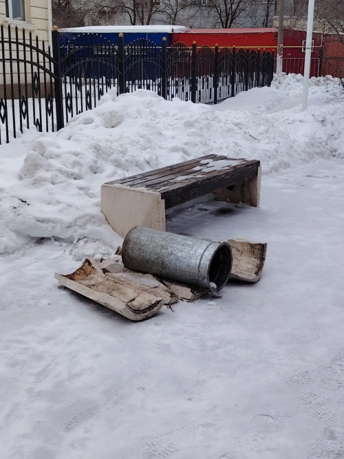 И вот недавно, вандалы разрушили скамейки и урны. И хотя они были изготовлены из прочного антивандального архитектурного камня, вандалы их разбивали тяжелыми предметами. То есть, уничтожали всё намеренно.