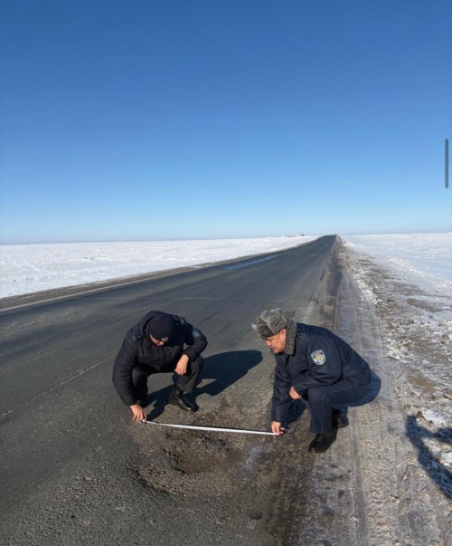 Самая частая проблема, мешающая безопасности движения - ямы на дорогах. || Фото предоставлено департаментом полиции Актюбинской области.