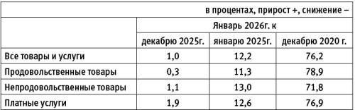 За январь 2026 года цены на платные услуги увеличились на 1,9%, непродовольственные товары – на 1,1%, продовольственные товары – на 0,3%.