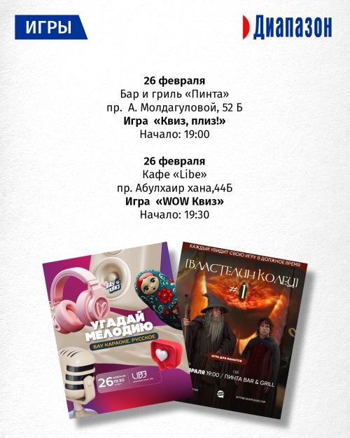 Выставки, театры, концерты, игры. Что можно найти в городе для культурного досуга с 26 февраля по 8 марта узнал «Диапазон».