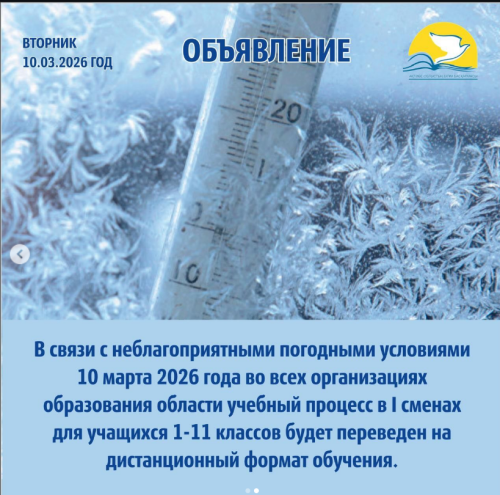 В связи с неблагоприятными погодными условиями 10 марта 2026 года во всех организациях образования области учебный процесс в 1 сменах для учащихся 1-11 классов будет переведен на дистанционный формат обучения, - сообщили в городском отделе образования.