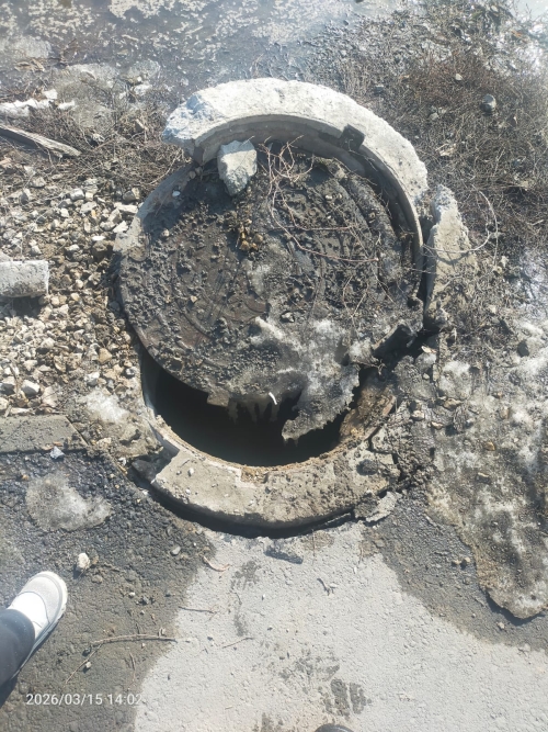 Трактор чистил снег, наехал на колодец и продавил крышку. Надо поменять пока кто-нибудь не провалился.