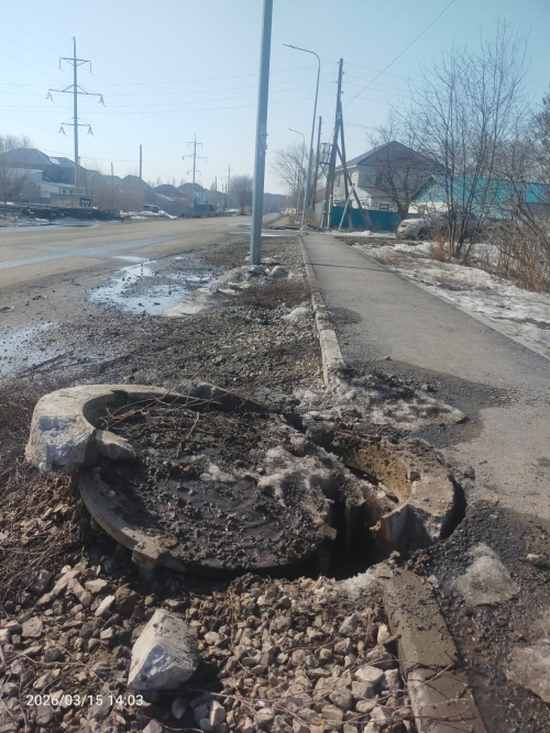 В том году писал в Диапазоны, что постоянно собирается лужа на этом перекрёстке, летом невозможно пройти. Почему арыки не делаете? Почему акимат ЖКХ так принимаете... -
