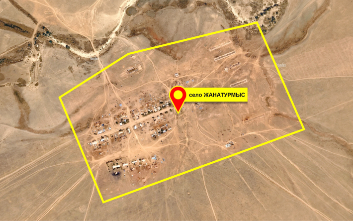 Площадь участка, где планируют геологоразведку, 1377 кв. км. || Скрин спутниковых карт yandex.kz