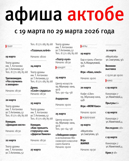 Выставки, театры, концерты, игры. Что можно найти в городе для культурного досуга с 19 по 29 марта узнал «Диапазон».