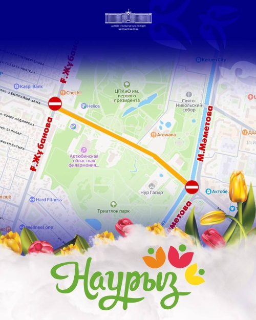 Кроме того, в районе жилого массива Есет батыр, во 2-м и 3-м микрорайонах, с 12:00 часов 21 марта до 15:00 часов 22 марта 2026 года будет временно ограничено движение автотранспорта.