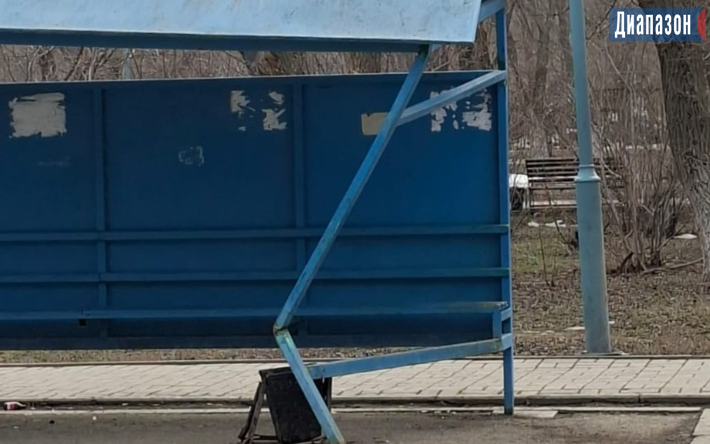 Народный репортер. Опора остановочного павильона погнулась