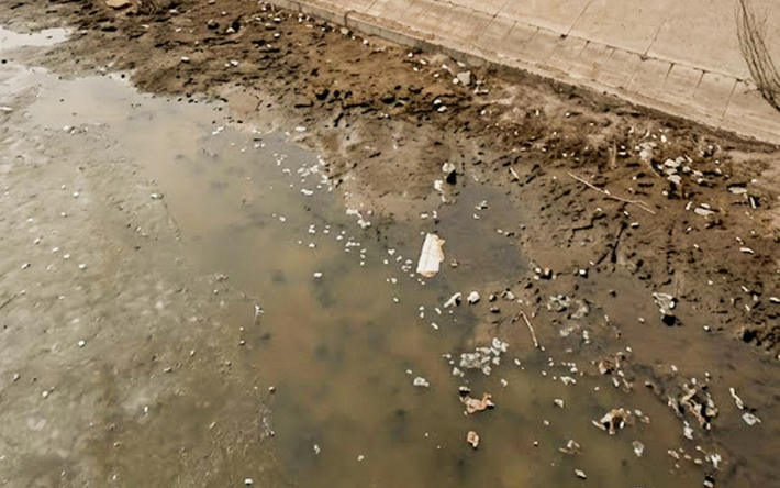 В речке в центре Актобе полно мёртвой рыбы
