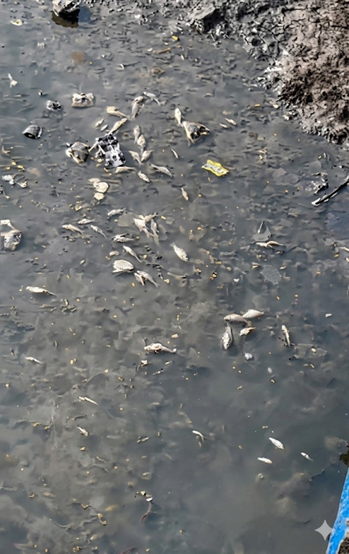 Мужчина рассказал, что пошел с детьми на празднование Наурыза, и переходя через мост, обратил внимание, что в воде и на глыбах льда в речке лежит мёртвая рыба, и её много.