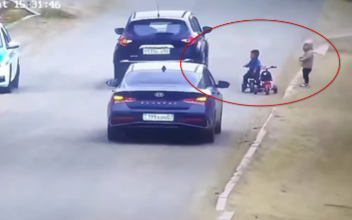 Двое малышей на велосипедах выехали на оживленную улицу. Их спасли
