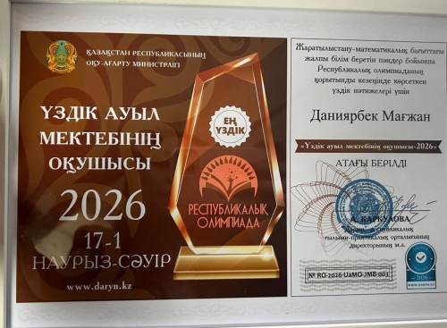Выпускник иргизской школы имени Алтынсарина Магжан Даниярбек стал победителем республиканского конкурса «Лучший ученик сельской школы – 2026».