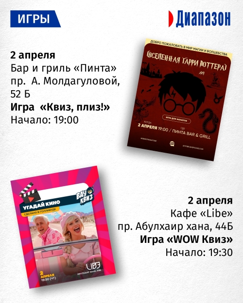Афиша Диапазона. Куда сходить в Актобе
