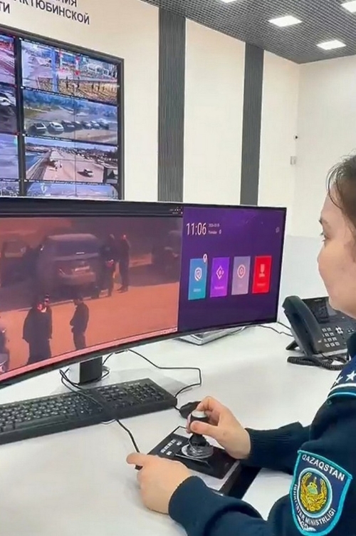 Видеопоток с камер в режиме реального времени поступает в Центр оперативного управления. || Кадр с видео пресс-службы Департамента полиции Актюбинской области