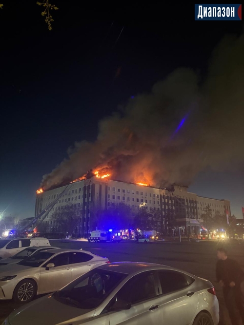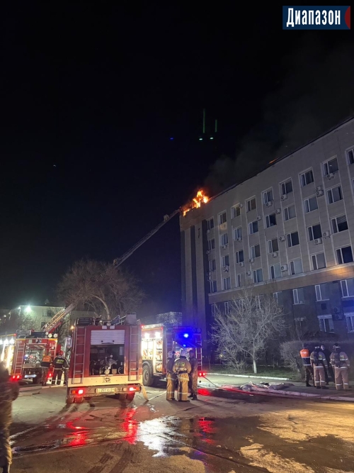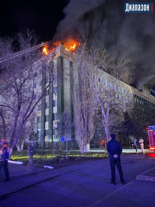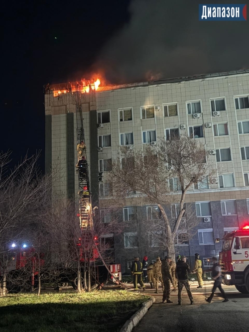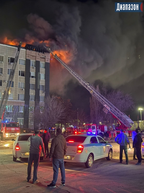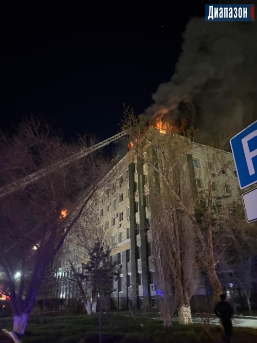 Огонь продолжает бушевать на крыше акимата