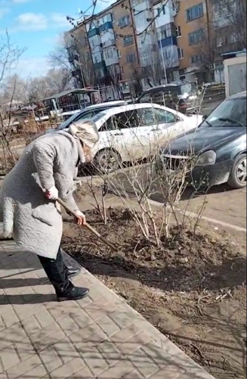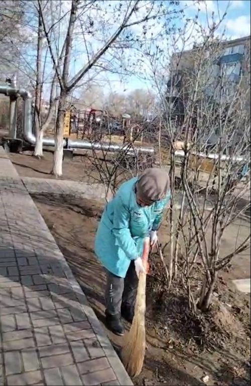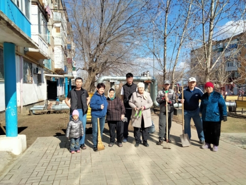 В Кандыагаше жильцы дома 75 на улице Жамбула дружно вышли на субботник. Первым вышел сосед по имени Сембай Тилеуулы, он граблями очистил территорию от опавших листьев, мусора, разровнял почву. Самой старшей участнице субботника, Алие апай 83 года. Она убирала мусор и листья, посадила тюльпаны.